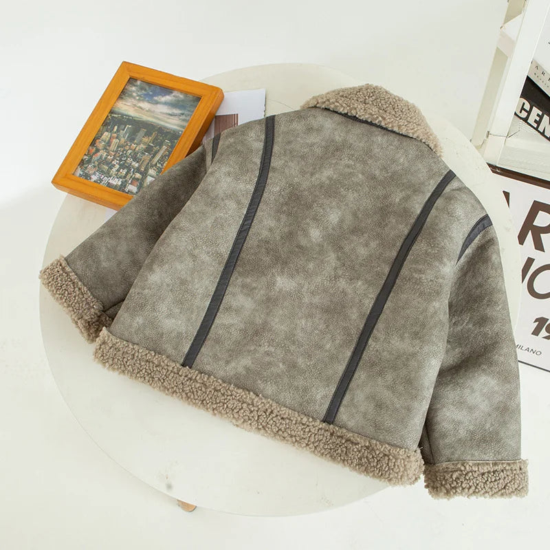 This boys' cotton jacket, designed for 2025, offers a thick, warm layer ideal for Autumn/Winter months. A beautiful shearling coat.