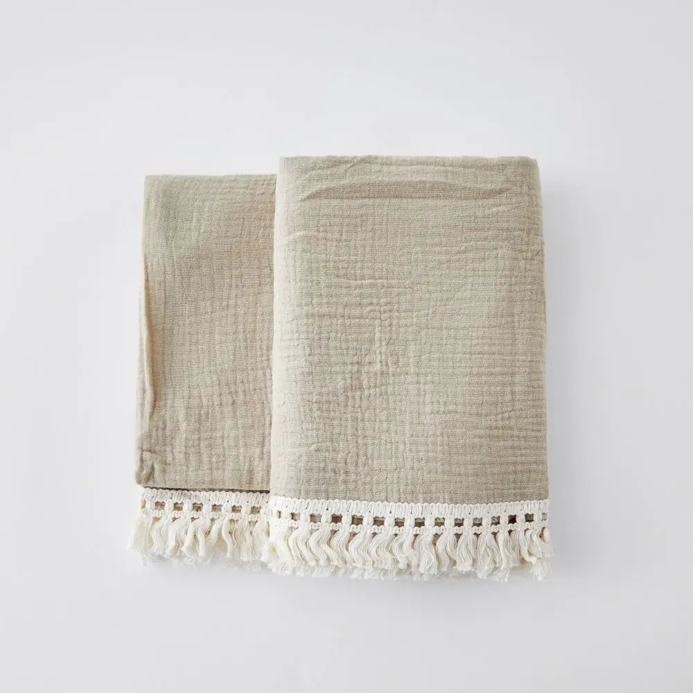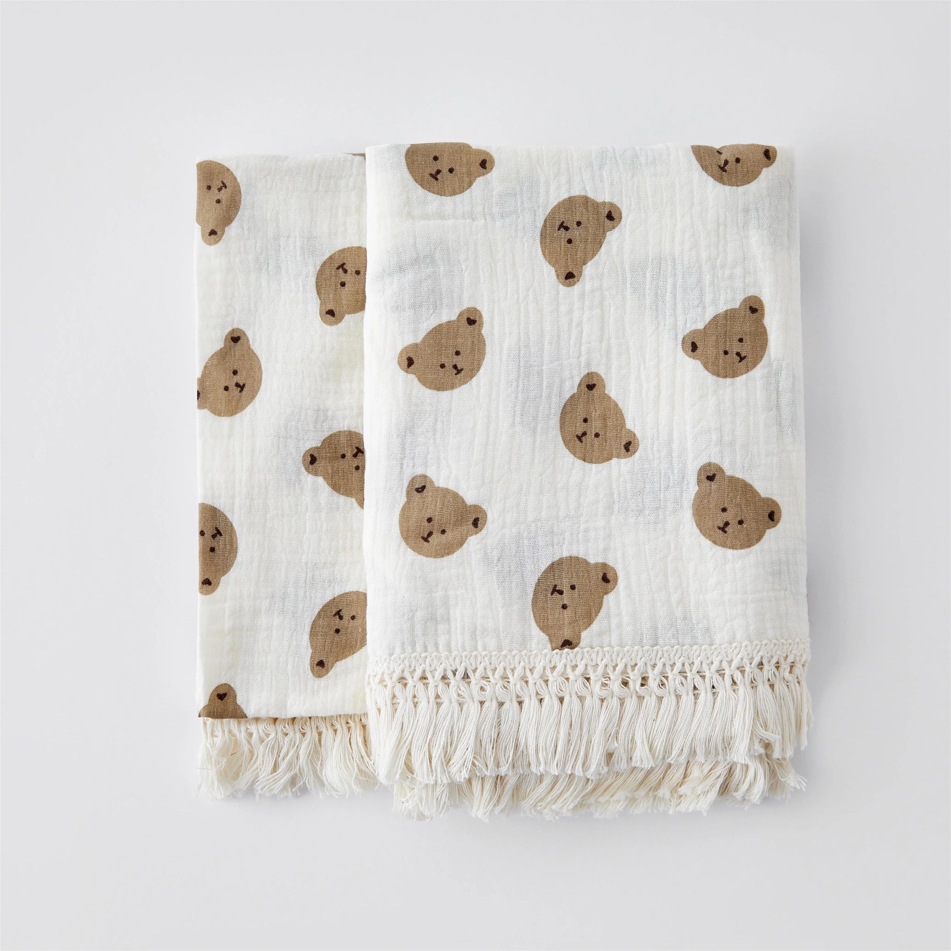 A beautiful light cotton muslin swaddle blanket complete with a tassel edge.
