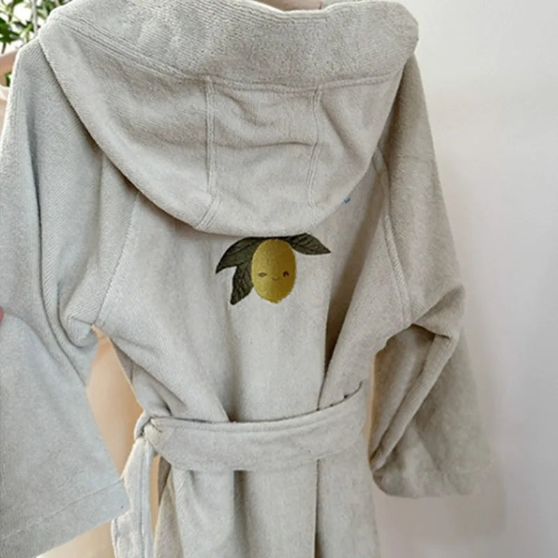 This flannel bathrobe features a refined cut and is crafted from premium towelling fabric, offering the cozy sensation reminiscent of a parent's affectionate embrace.