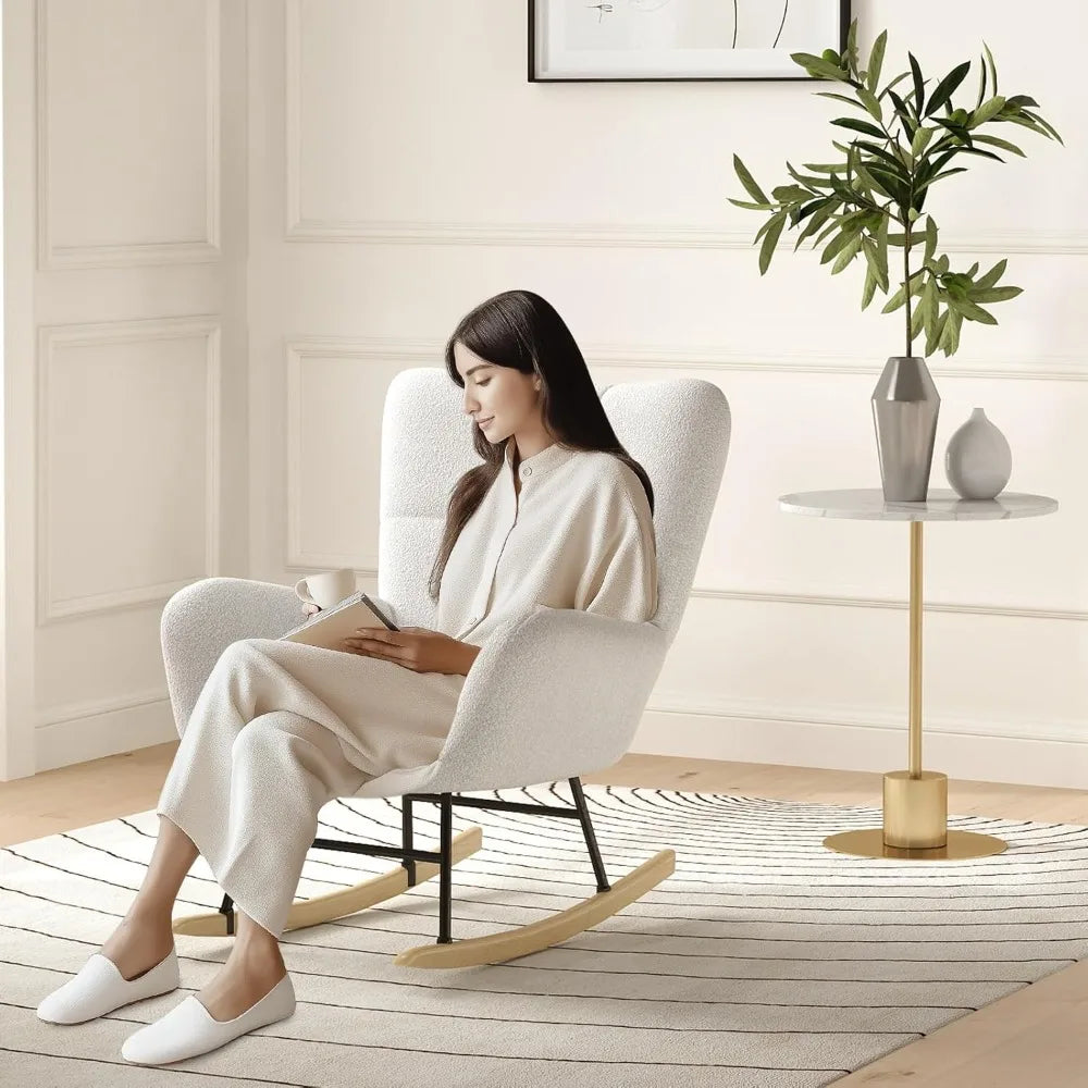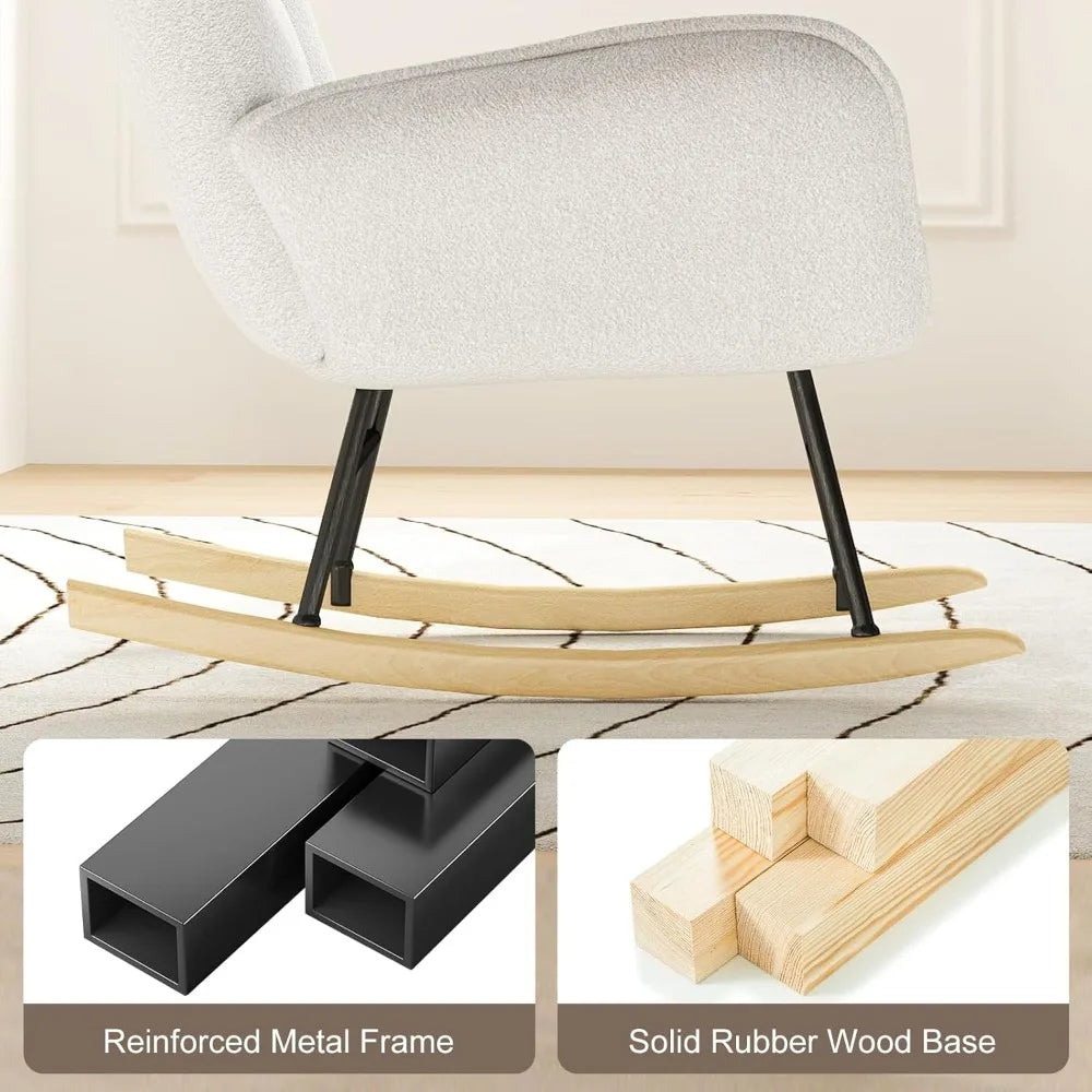 Comfortable & Sturdy: Crafted with an iron frame, solid wood feet, and high-strength sponge, this rocking chair is upholstered with soft Teddy felt fabric and reinforced with sturdy stitching. It offers long-lasting comfort and stability, supporting a maximum weight capacity of 150kg, making it a safe and reliable choice for years to come.