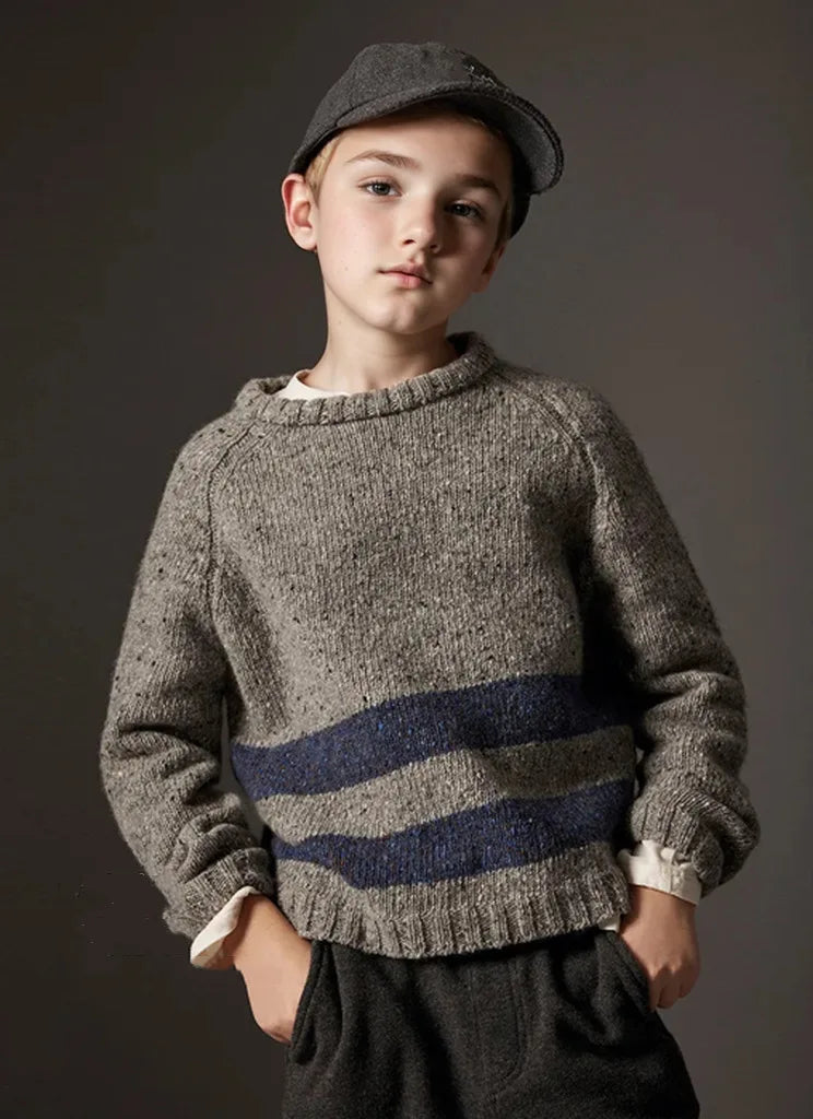 Knitted Striped Cosy Jumper, a wool blend for warmth and comfort to snuggle your infant during the winter period.